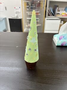 紙コップや折り紙などを駆使して上手く作ることができていますね。実際のツリーの近くに飾ってみても可愛いかなと思いました。