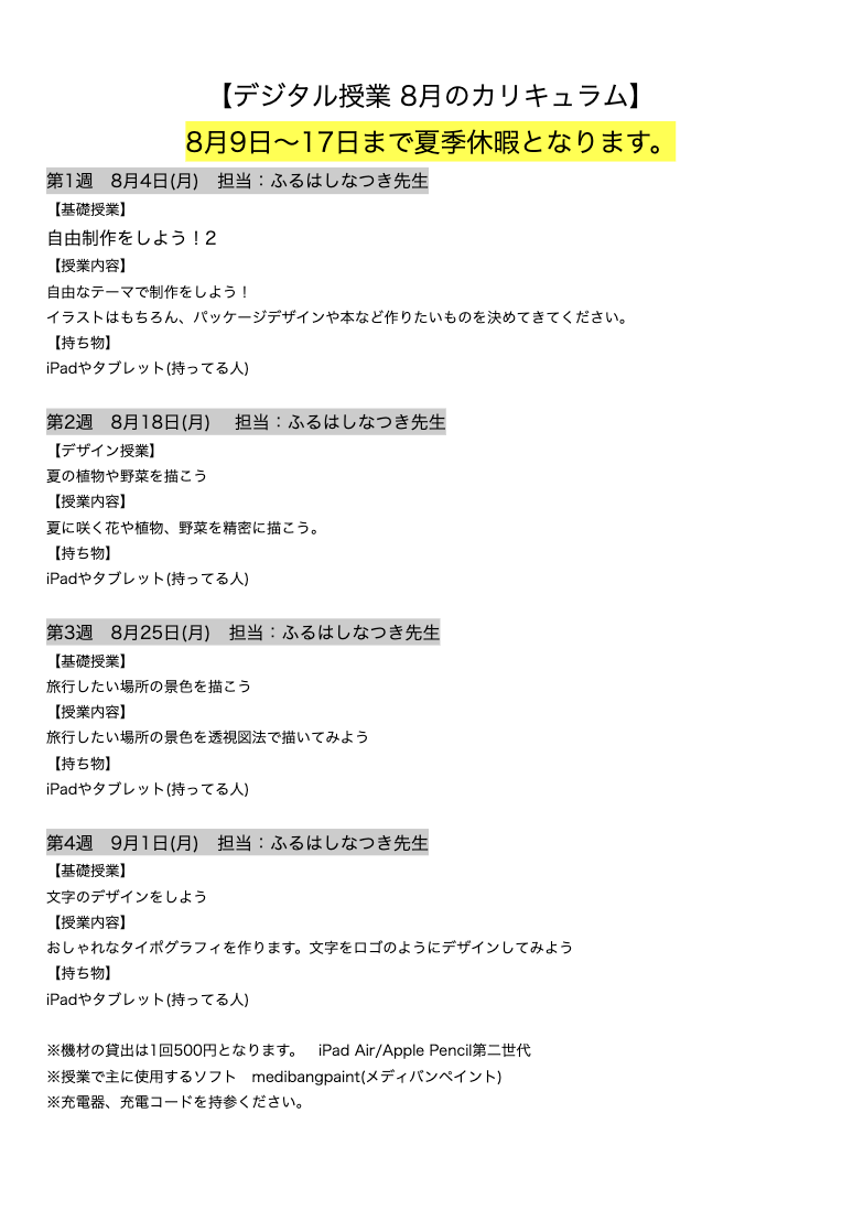 【デジタル授業 8月のカリキュラム】